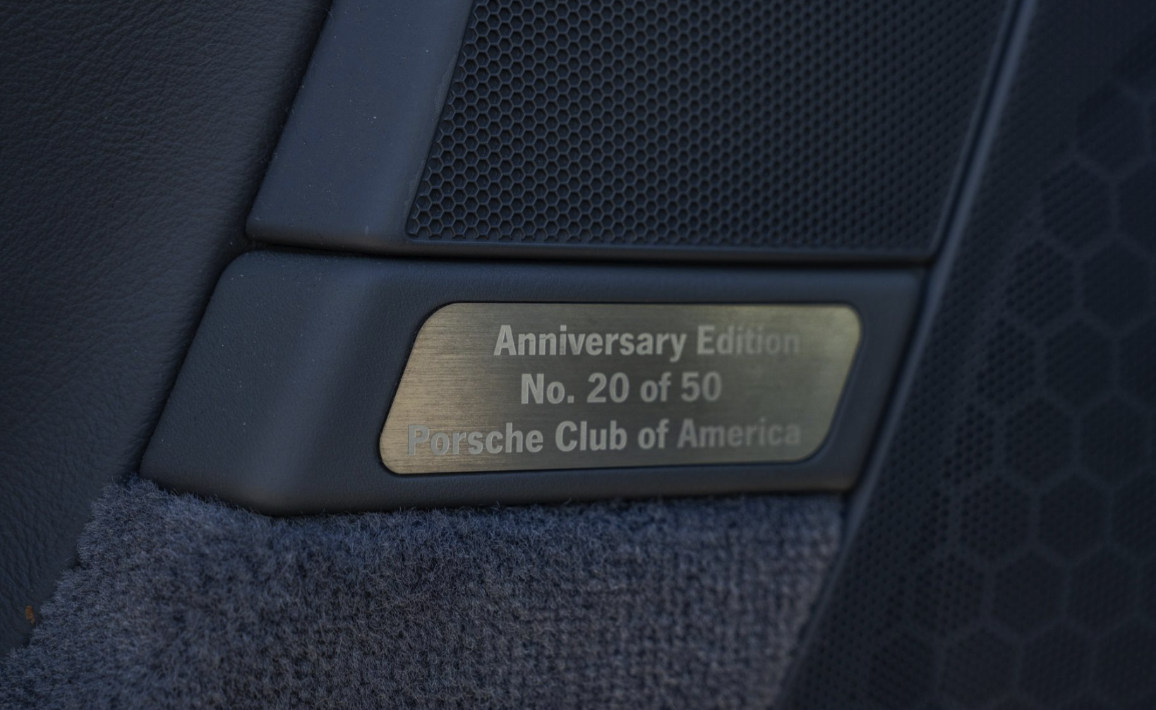 All started life as Carrera S models and all were painted Azurro California, a color borrowed from...ahem.....Ferrari. Stone Grey leather is found inside, along with a few nice commemorative touches like the painted console and badging on the doors and door sills.