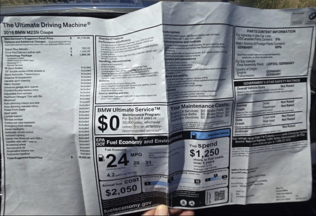 Back to the car itself, all in all it looks to be a fine example of an M235i. Clean inside, outside, and even underneath. It even comes with two keys and original window sticker. The seller is active, engaged, and answering questions regularly.